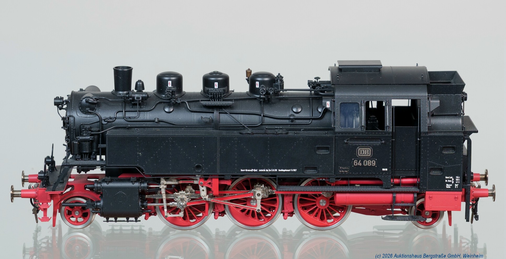 | 3008 | Tax: 530,- | 1 Spur 0 Tenderlok-Kleinserienmodell Baureihe: 64, Deutsche Bundesbahn, Epoche III, Betriebsnummer: 64.089, Achsfolge: 1'C'1, Metallausführung, Vorbildkupplungen, Federpuffer, sehr guter Zustand, sachgerechte Verpackung, nur an Selbstabholer! | |