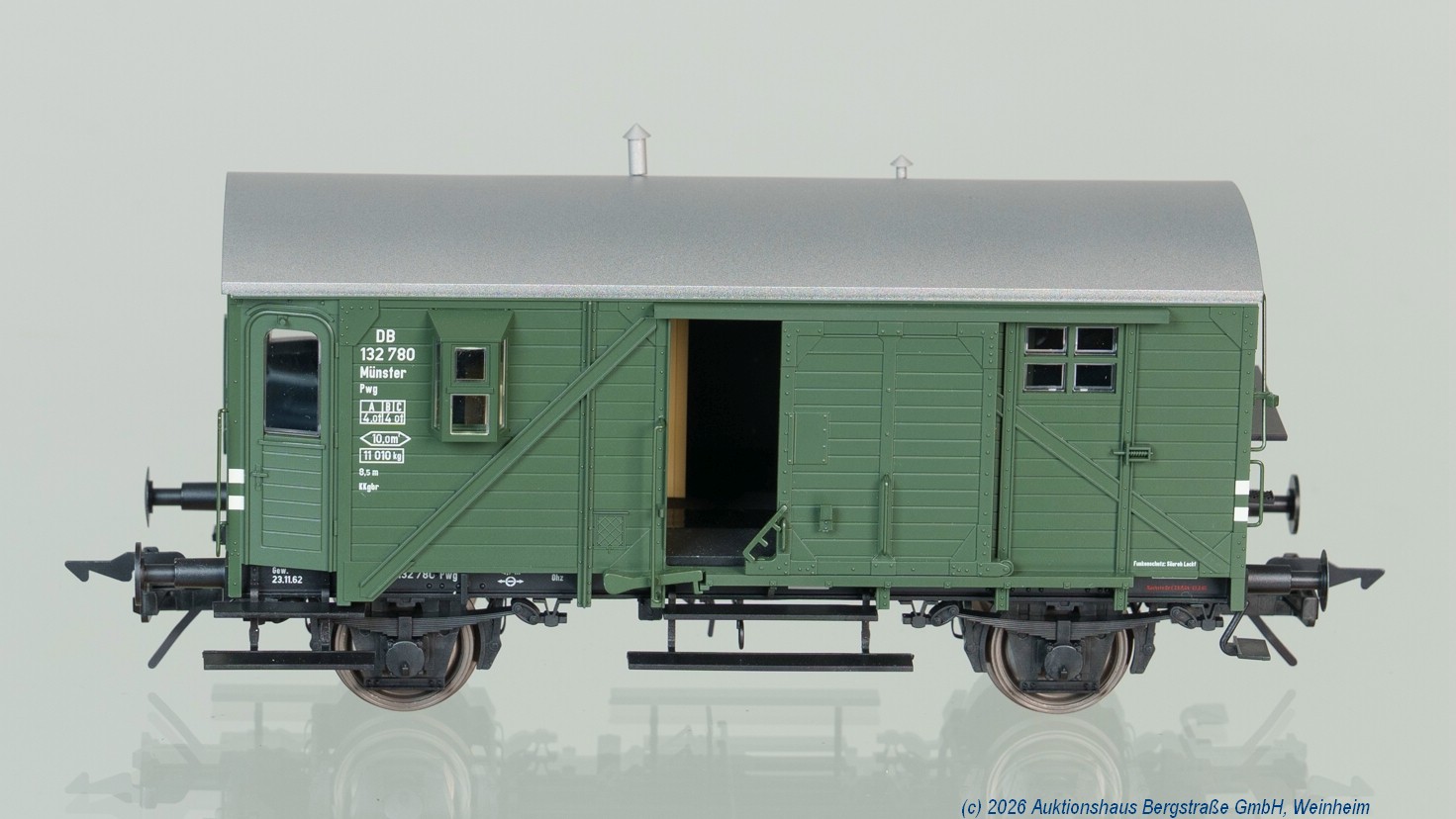 | 3024 | Tax: 62,- | 1 Lenz Spur 0 Güterzug-Packwagen 42230-01, 2-achs., Deutsche Bundesbahn, Epoche III, Wagennummer: 132.780 Münster, grün, Dach: silbergrau, Längsträgerbeschriftung, 2 Laderaum-Schiebetüren, automatische Kupplungen, Federpuffer, neuwertiger Zustand, Originalkarton! | |