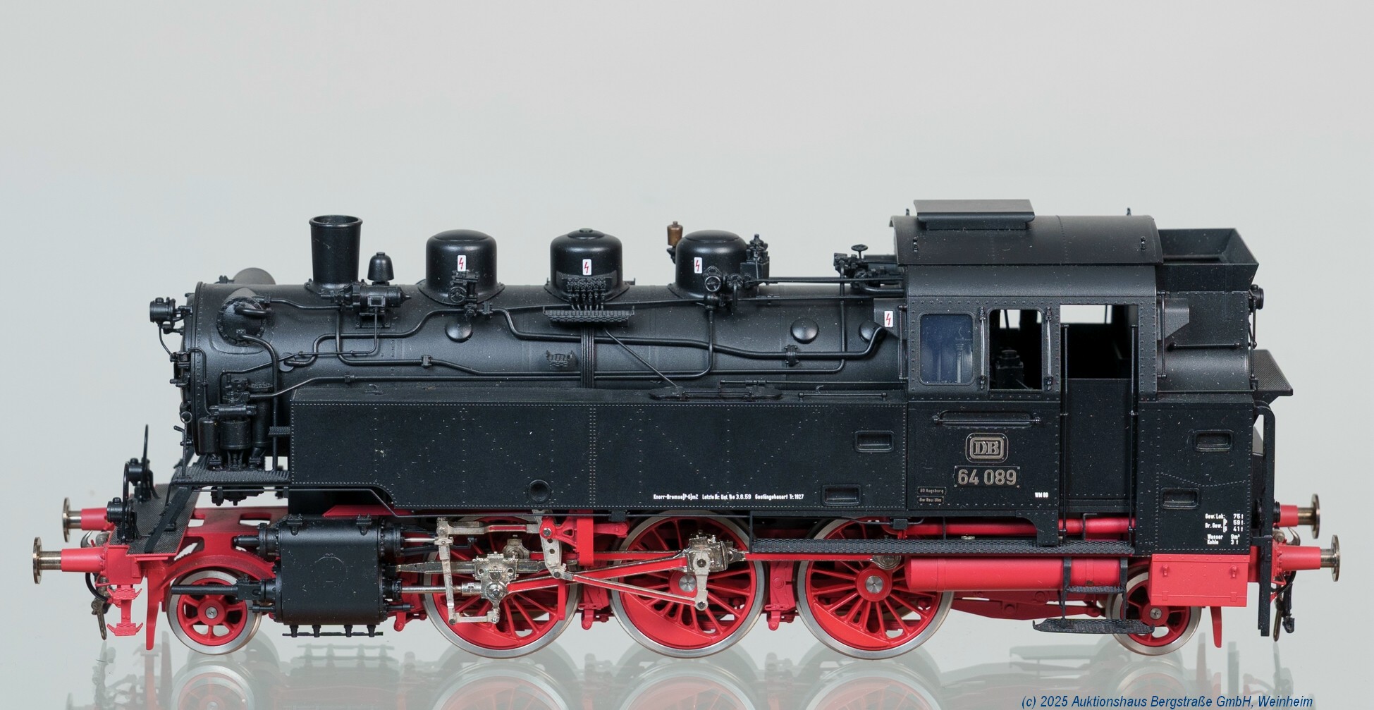 | 3043 | Tax: 680,- | 1 Spur 0 Tenderlok-Kleinserienmodell Baureihe: 64, Deutsche Bundesbahn, Epoche III, Betriebsnummer: 64.089, Achsfolge: 1'C'1, Metallausführung, Vorbildkupplungen, Federpuffer, sehr guter Zustand, sachgerechte Verpackung, nur an Selbstabholer! | |